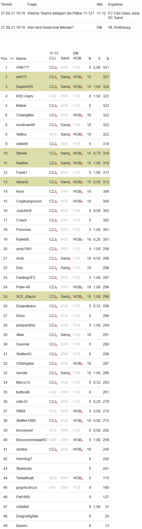 Frauen-Bundesliga-Tippspiel-Statistiken: Saison 2021/22