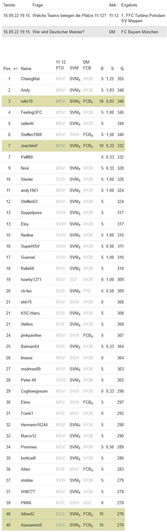 Frauen-Bundesliga-Tippspiel-Statistiken: Saison 2022/23