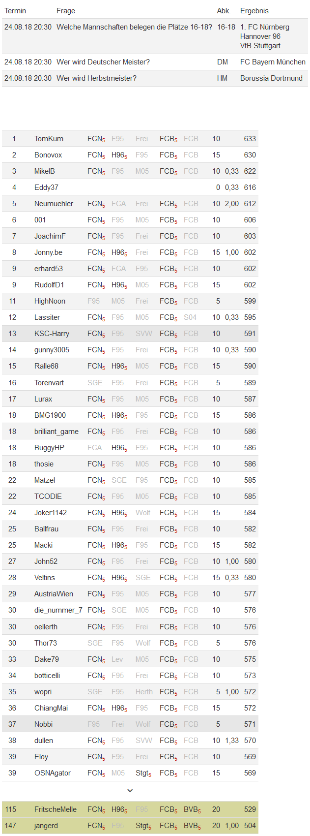 Bundesliga-Tippspiel-Statistiken: Saison 2018/19