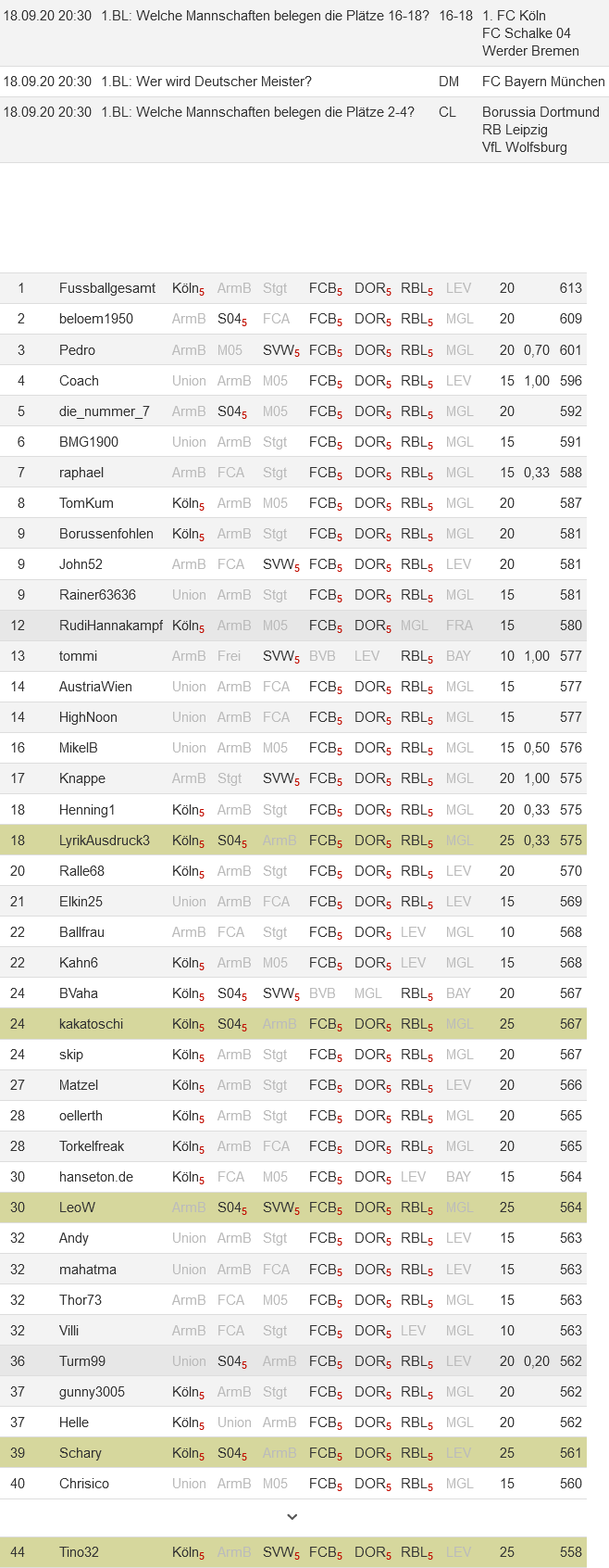 Bundesliga-Tippspiel-Statistiken: Saison 2020/21