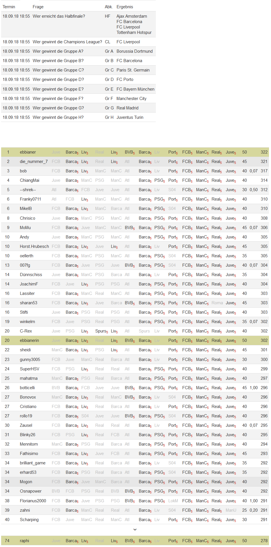 Champions League-Tippspiel-Statistiken: Saison 2018/19