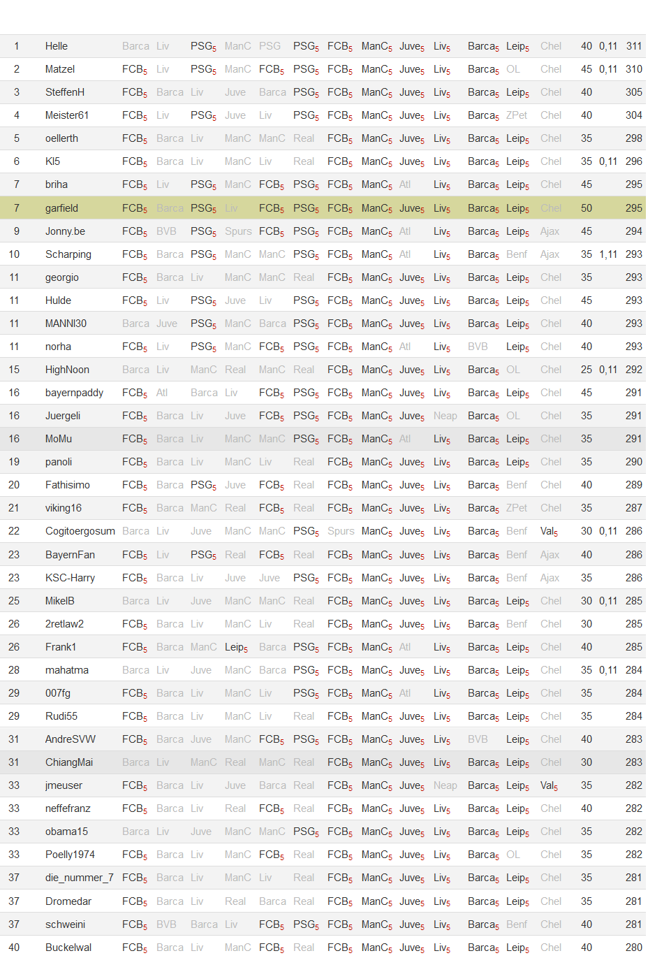 Champions League-Tippspiel-Statistiken: Saison 2019/20
