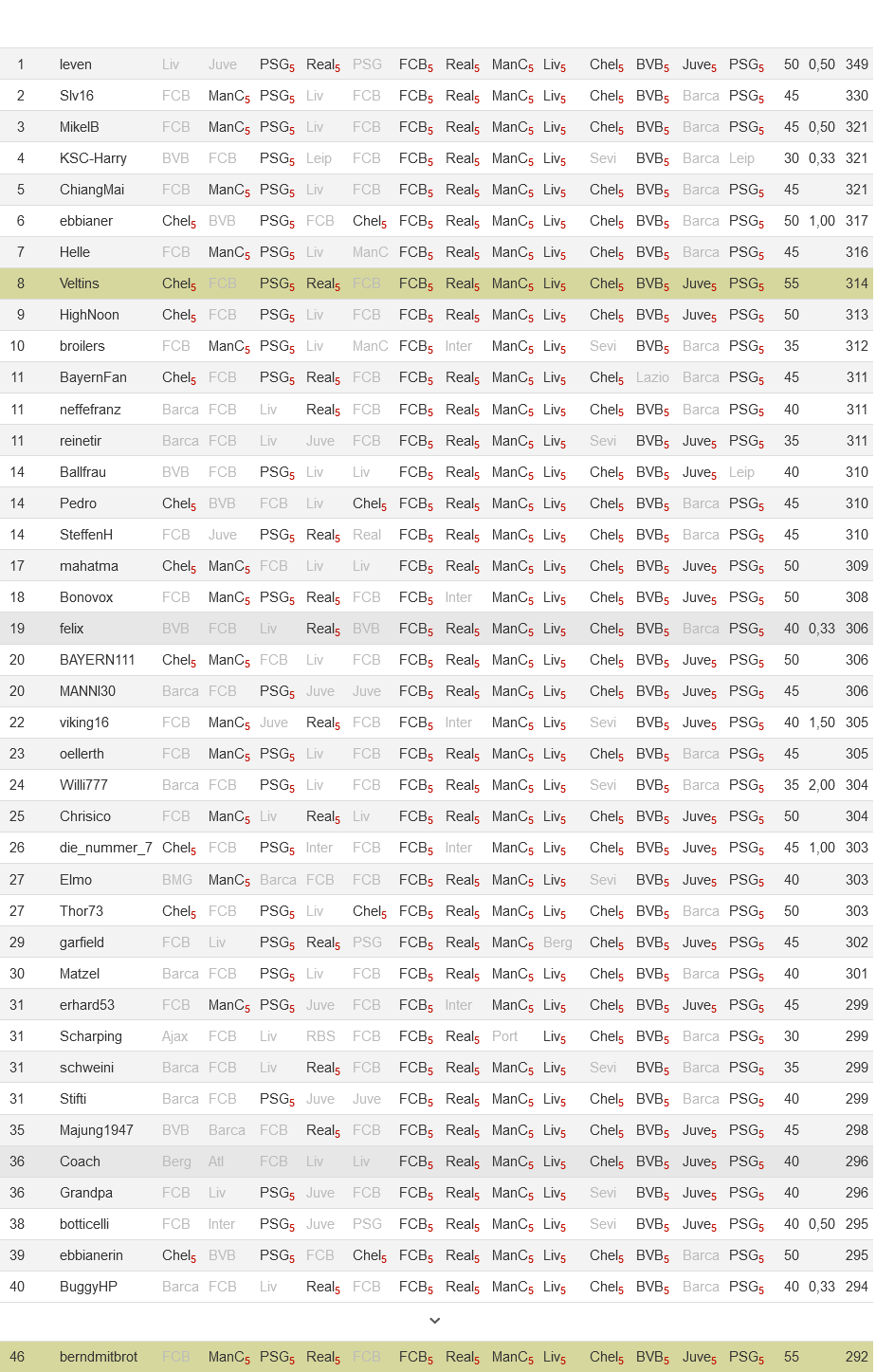 Champions League-Tippspiel-Statistiken: Saison 2020/21