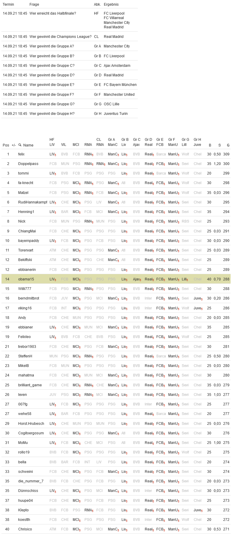 Champions League-Tippspiel-Statistiken: Saison 2021/22