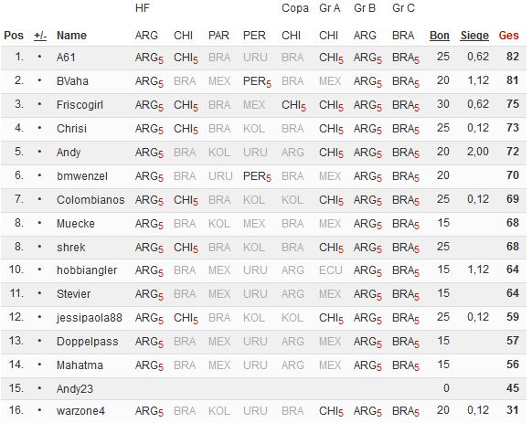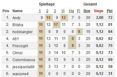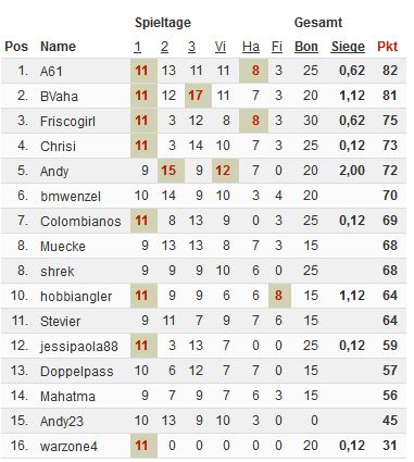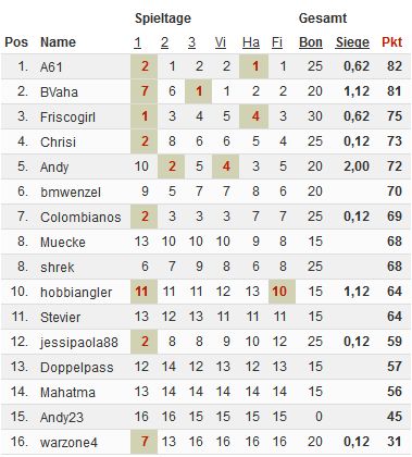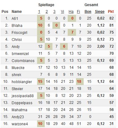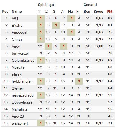 Spieltagpunkte (Platzierung nach Siegpunkten)