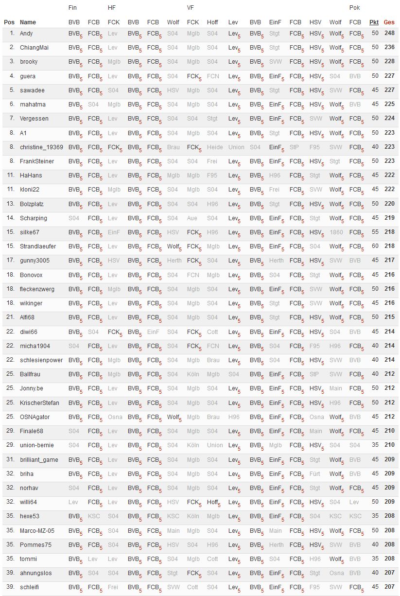 DFB-Pokal Tippspiel-Statistiken: Saison 2013/14