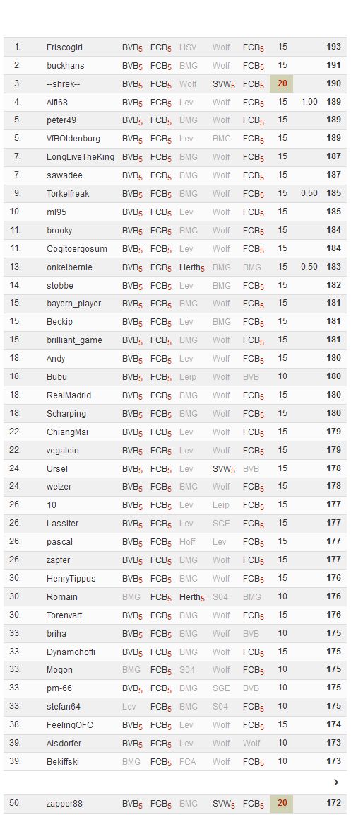 DFB-Pokal Tippspiel-Statistiken: Saison 2015/16