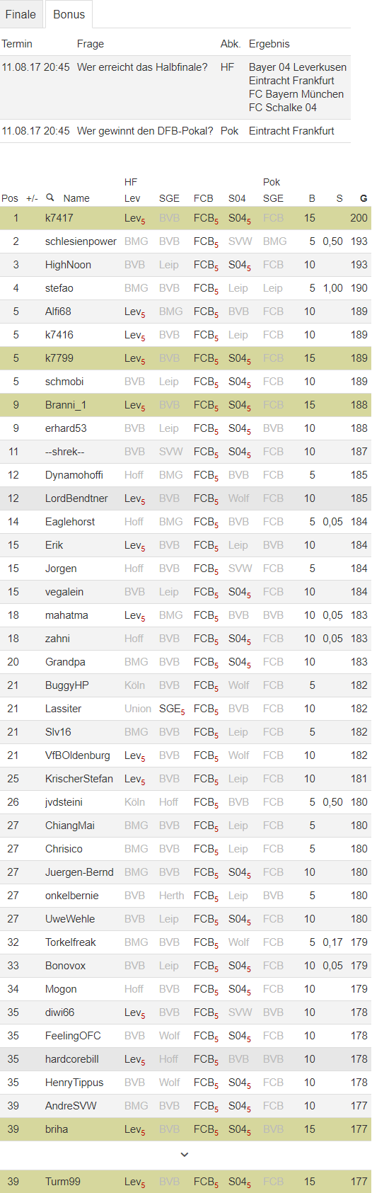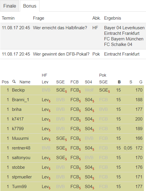DFB-Pokal Tippspiel-Statistiken: Saison 2017/18
