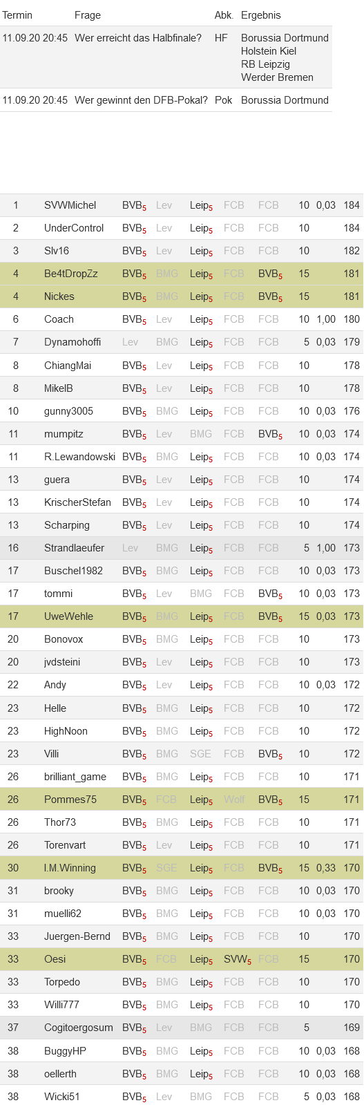 DFB-Pokal Tippspiel-Statistiken: Saison 2020/21