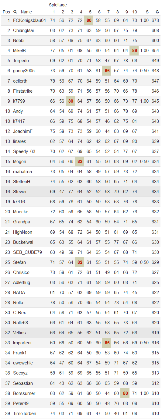 Endergebnis (mit Spieltagpunkten)