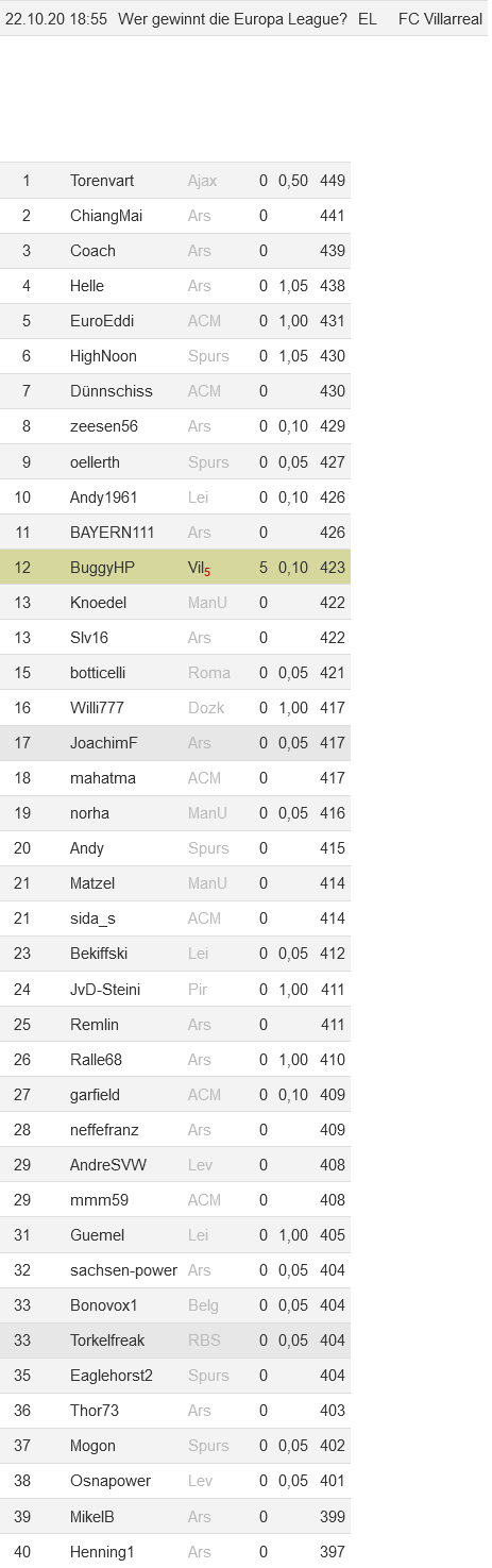 Europa League Tippspiel-Statistiken: Saison 2020/21