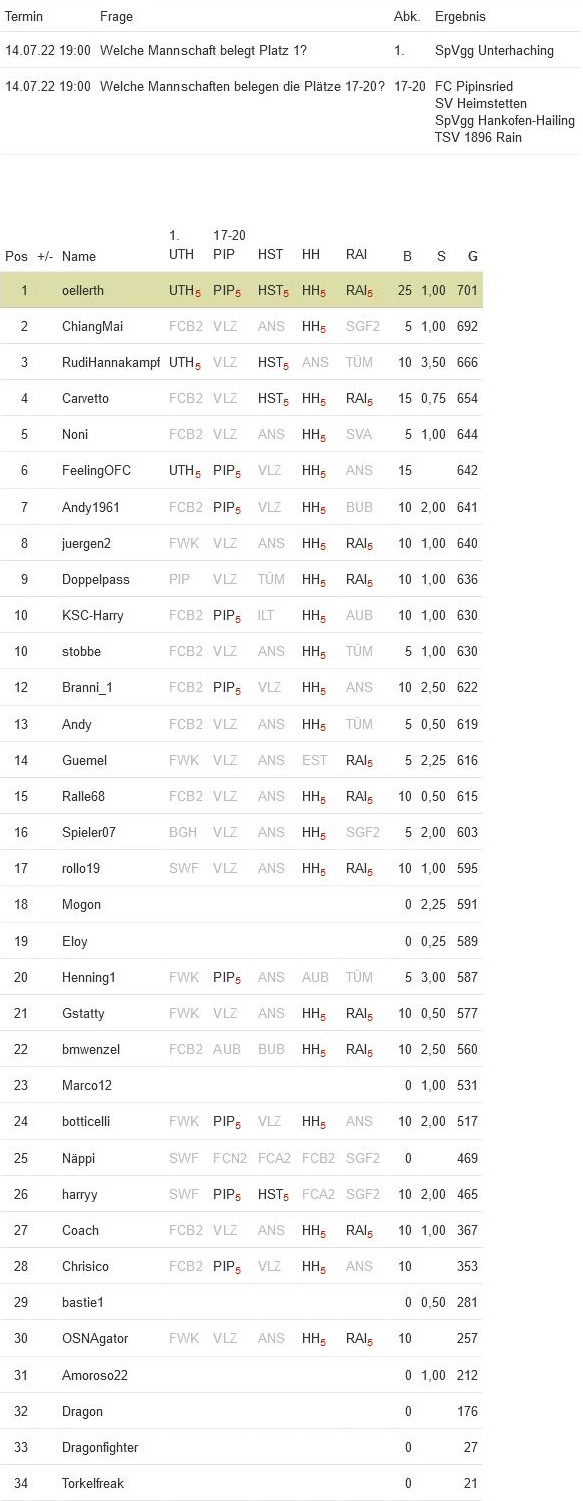 RL Bayern-Tippspiel-Statistiken: Saison 2022/23