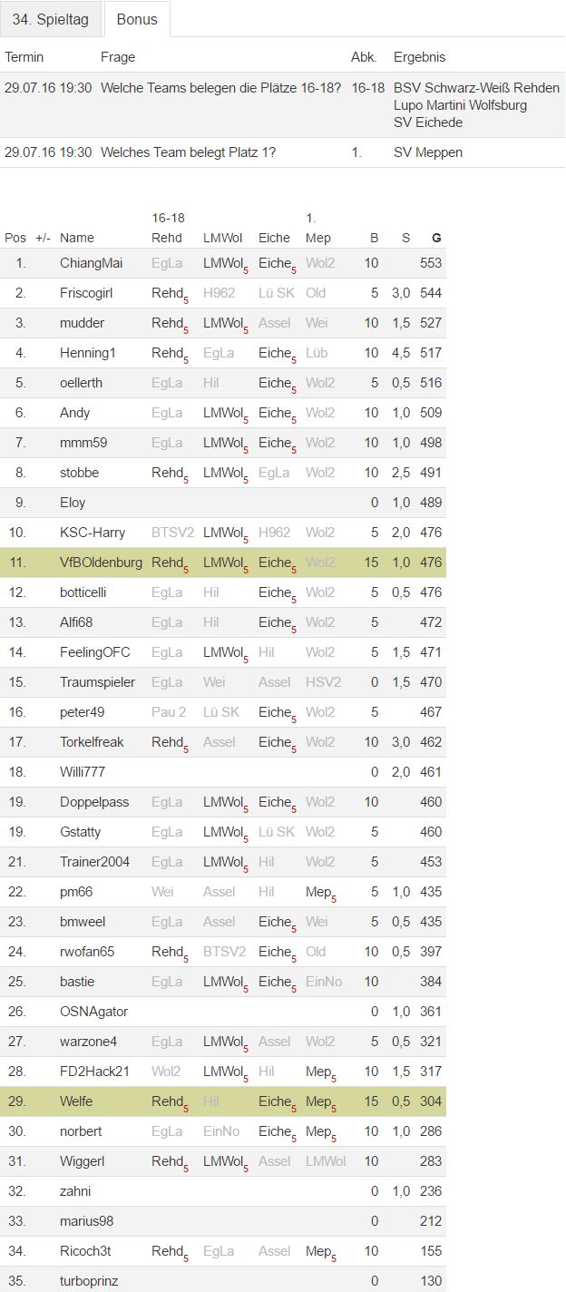 RL Nord-Tippspiel-Statistiken: Saison 2016/17