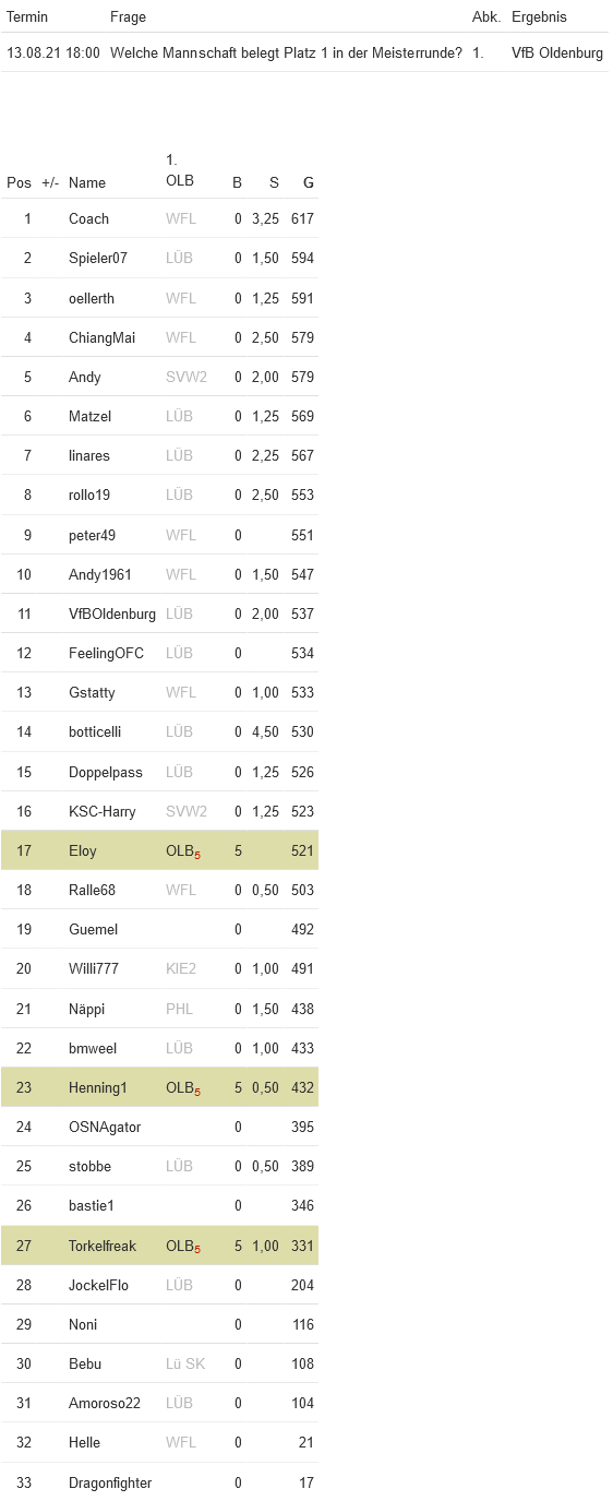 RL Nord-Tippspiel-Statistiken: Saison 2021/22