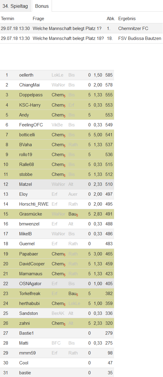 RL Nordost-Tippspiel-Statistiken: Saison 2018/19