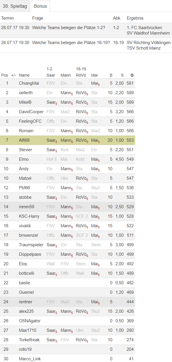 RL Südwest-Tippspiel-Statistiken: Saison 2017/18