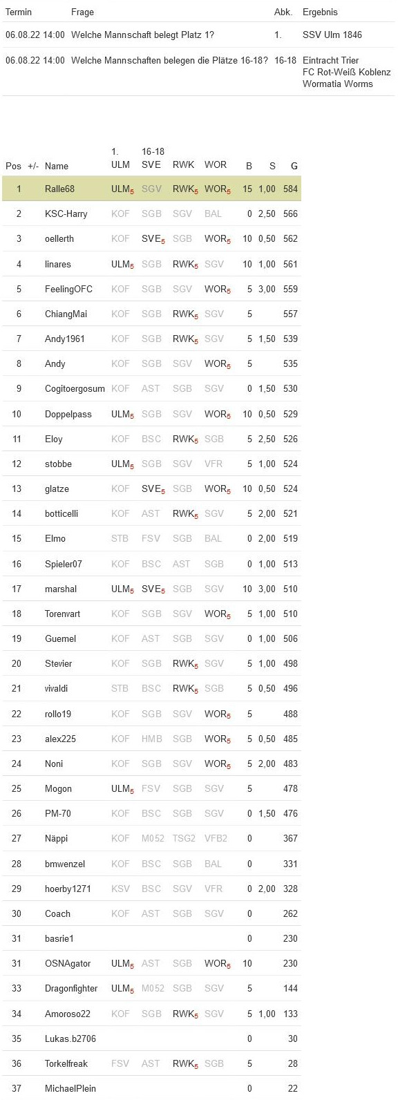 RL Südwest-Tippspiel-Statistiken: Saison 2022/23