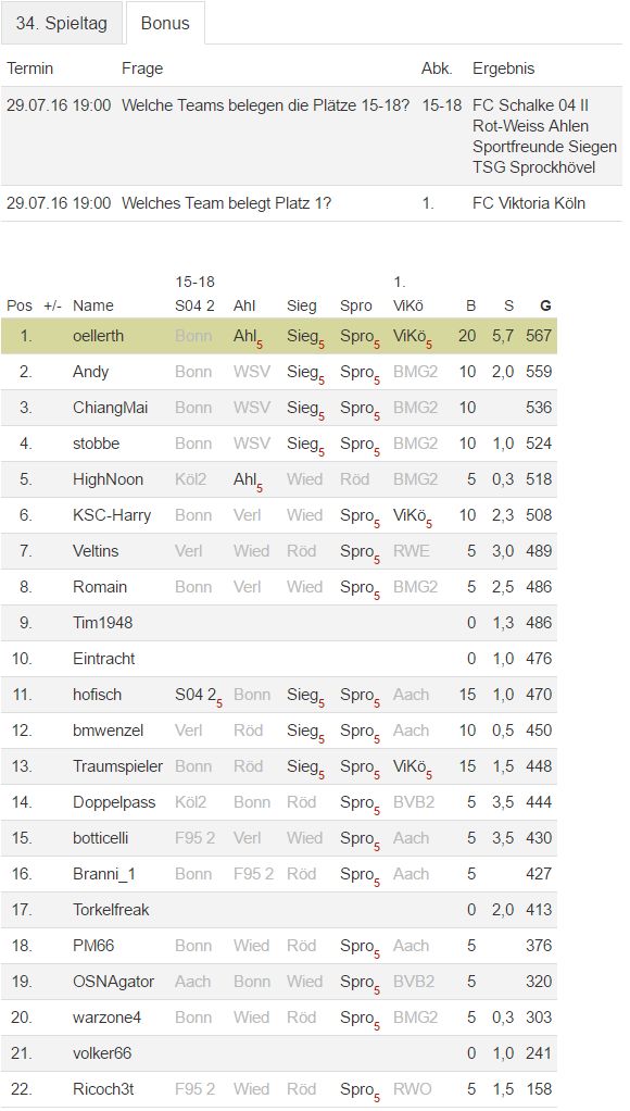RL West-Tippspiel-Statistiken: Saison 2016/17