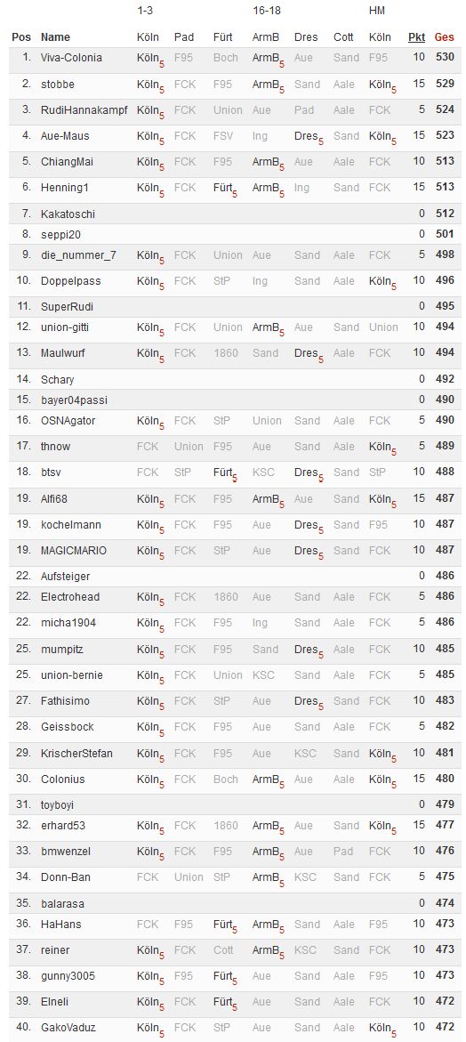 2. Liga-Tippspiel-Statistiken: Saison 2013/14