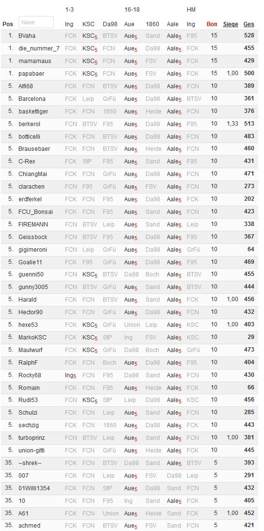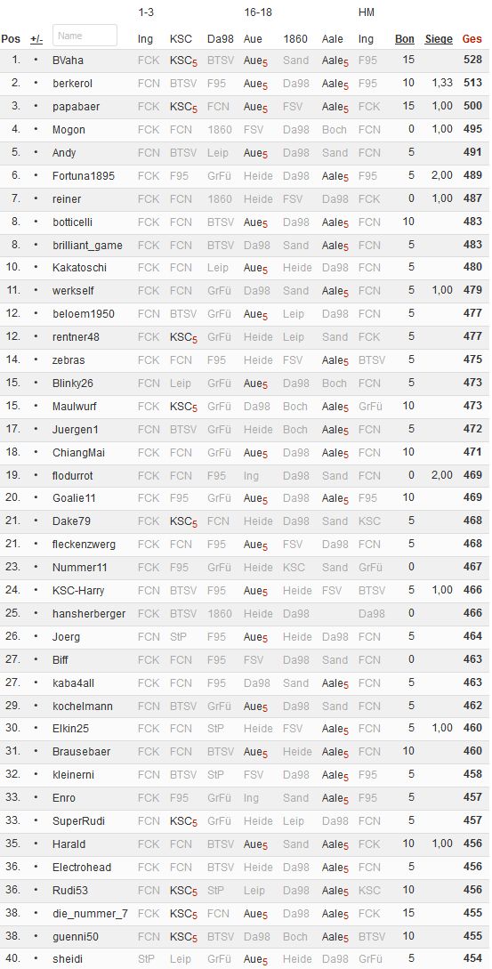 2. Liga-Tippspiel-Statistiken: Saison 2014/15