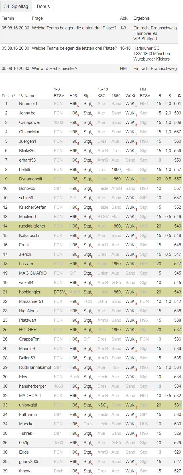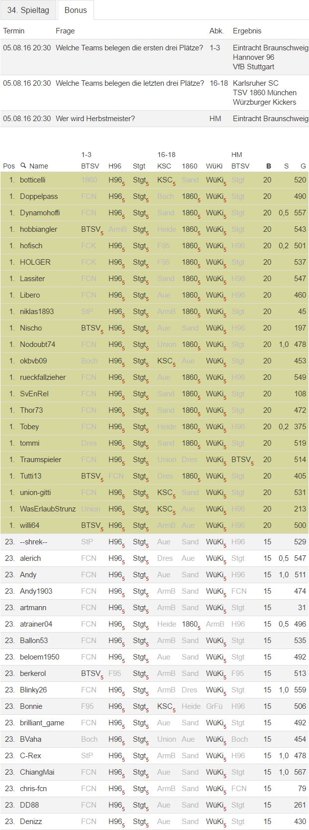 2. Liga-Tippspiel-Statistiken: Saison 2016/17