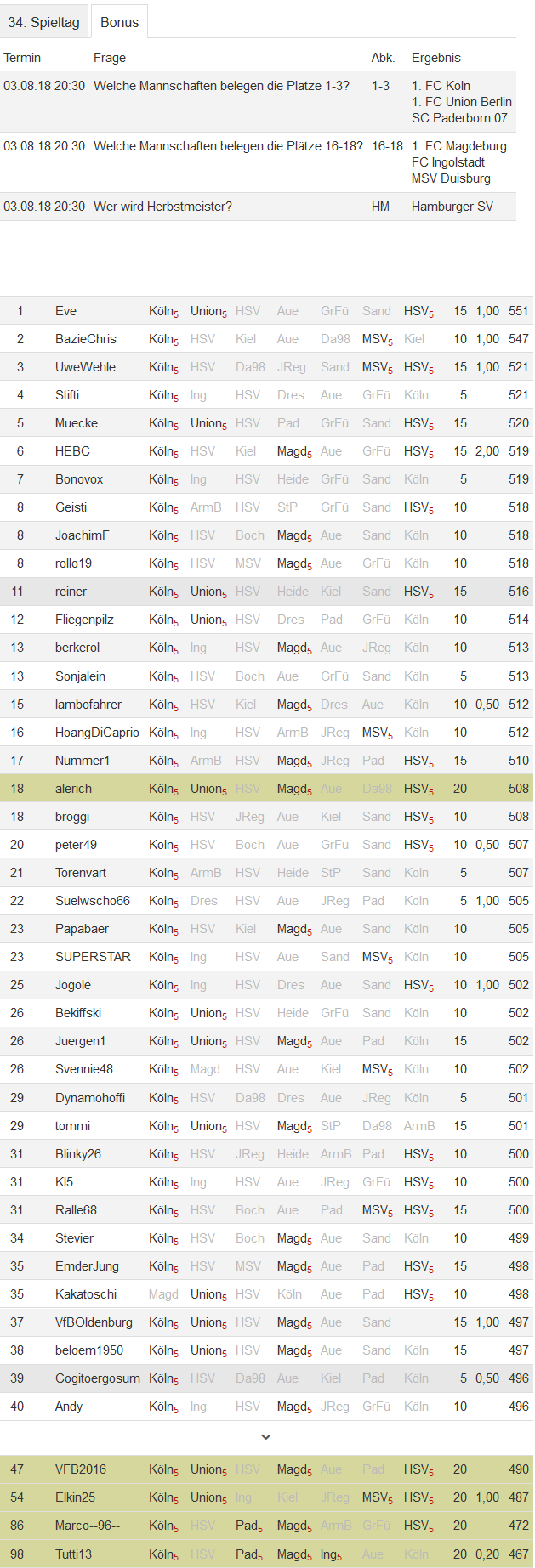 2. Liga-Tippspiel-Statistiken: Saison 2018/19