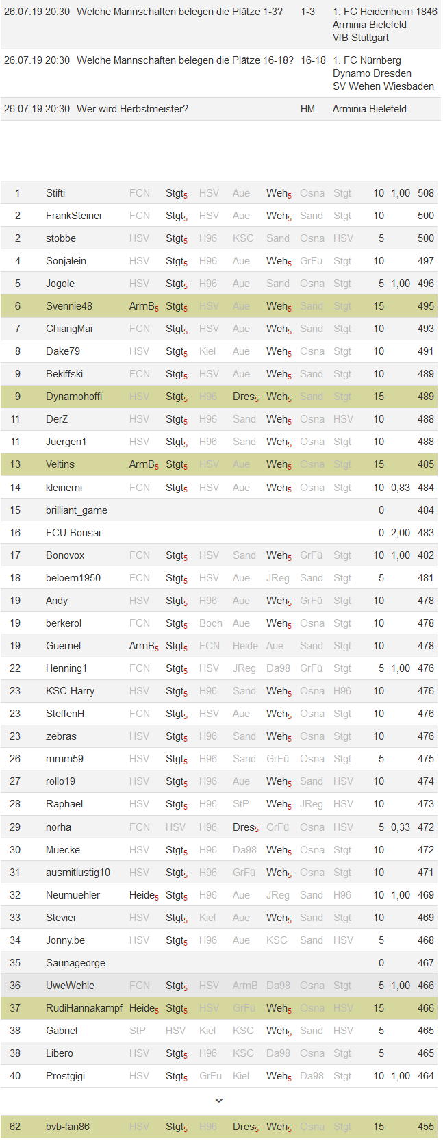 2. Liga-Tippspiel-Statistiken: Saison 2019/20