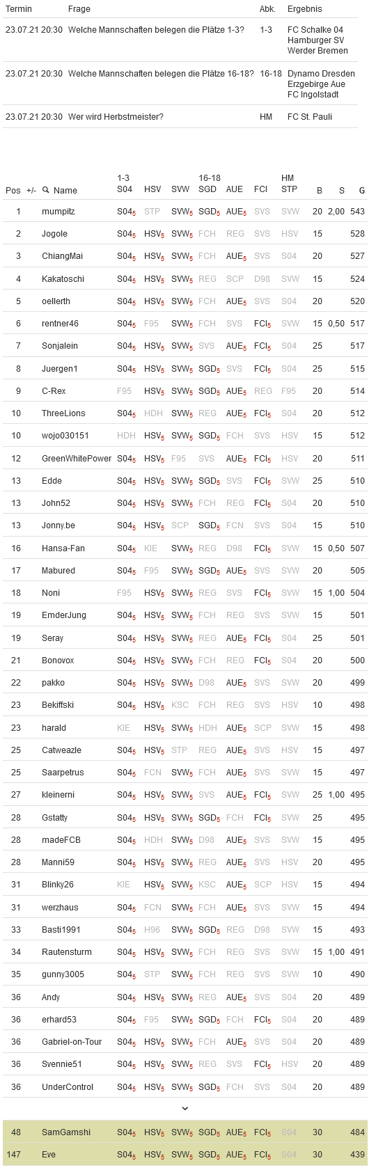 2. Liga-Tippspiel-Statistiken: Saison 2021/22