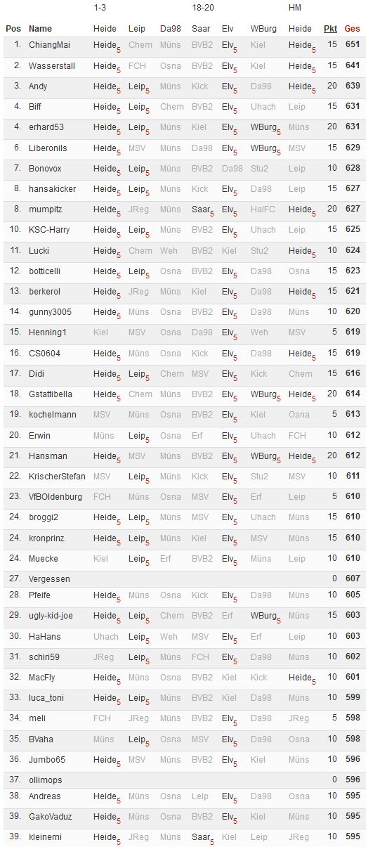 3. Liga-Tippspiel-Statistiken: Saison 2013/14