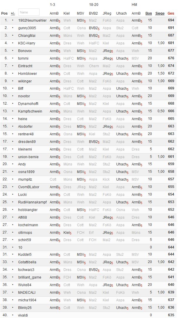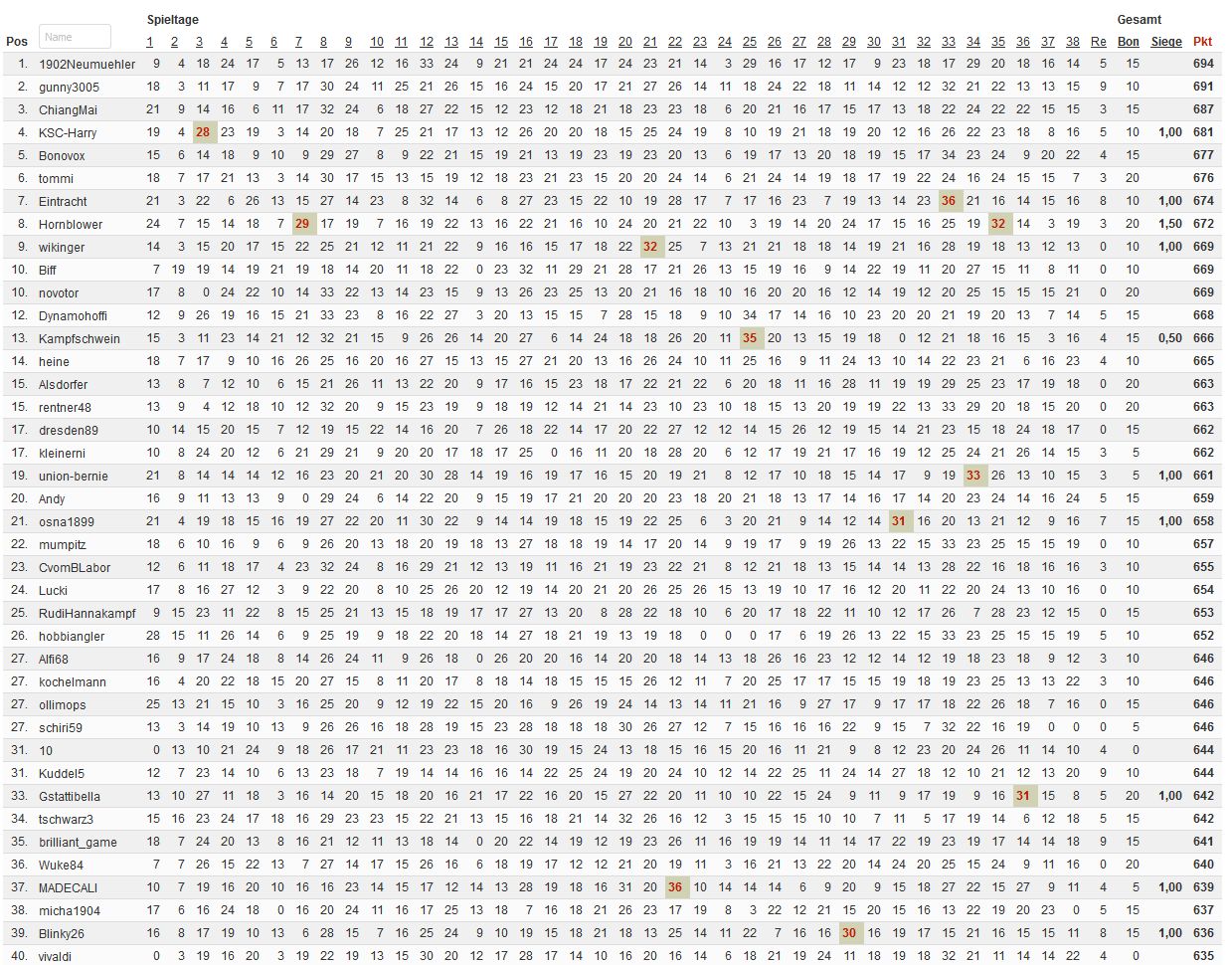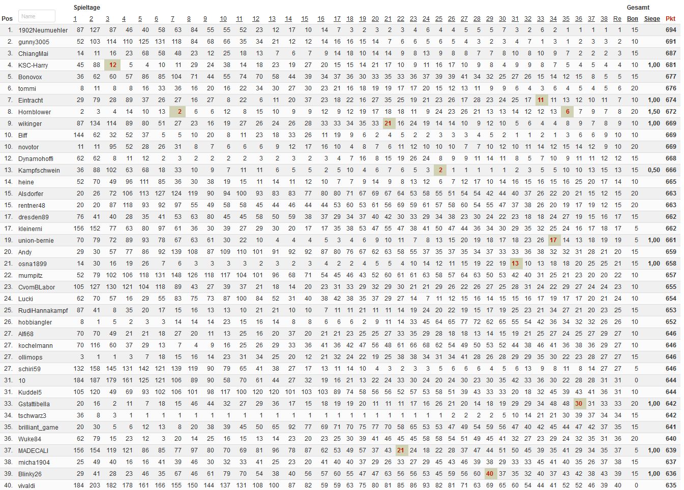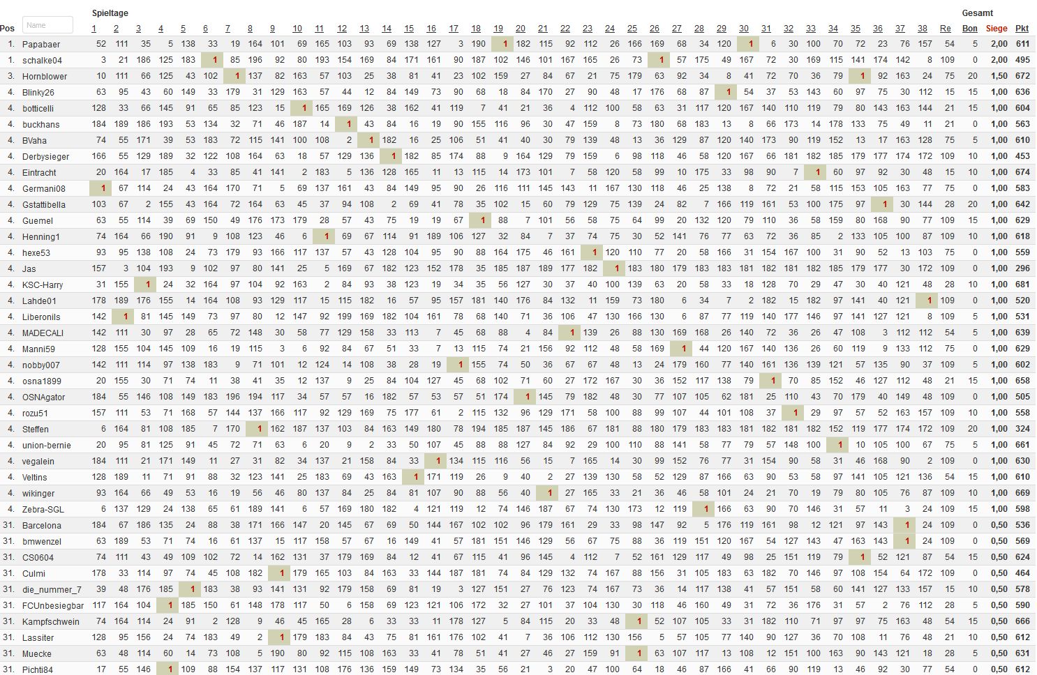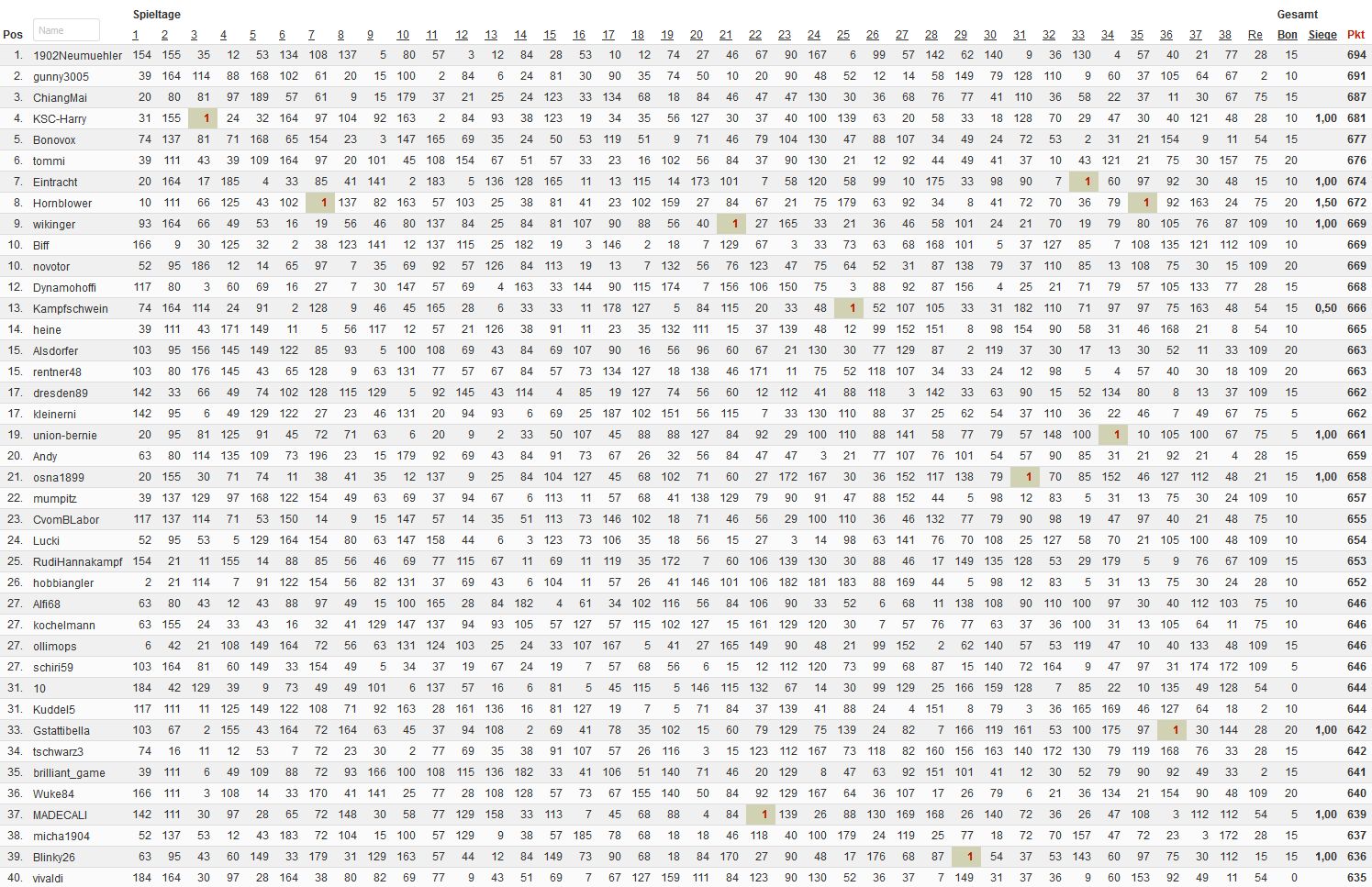 Spieltagplatzierungen (Platzierung nach Siegpunkten)