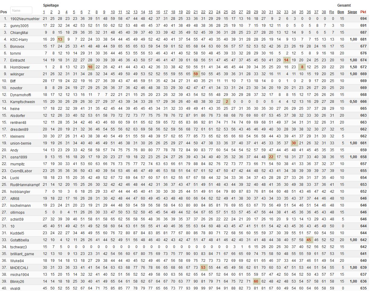 3. Liga-Tippspiel-Statistiken: Saison 2014/15