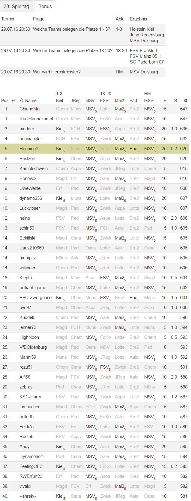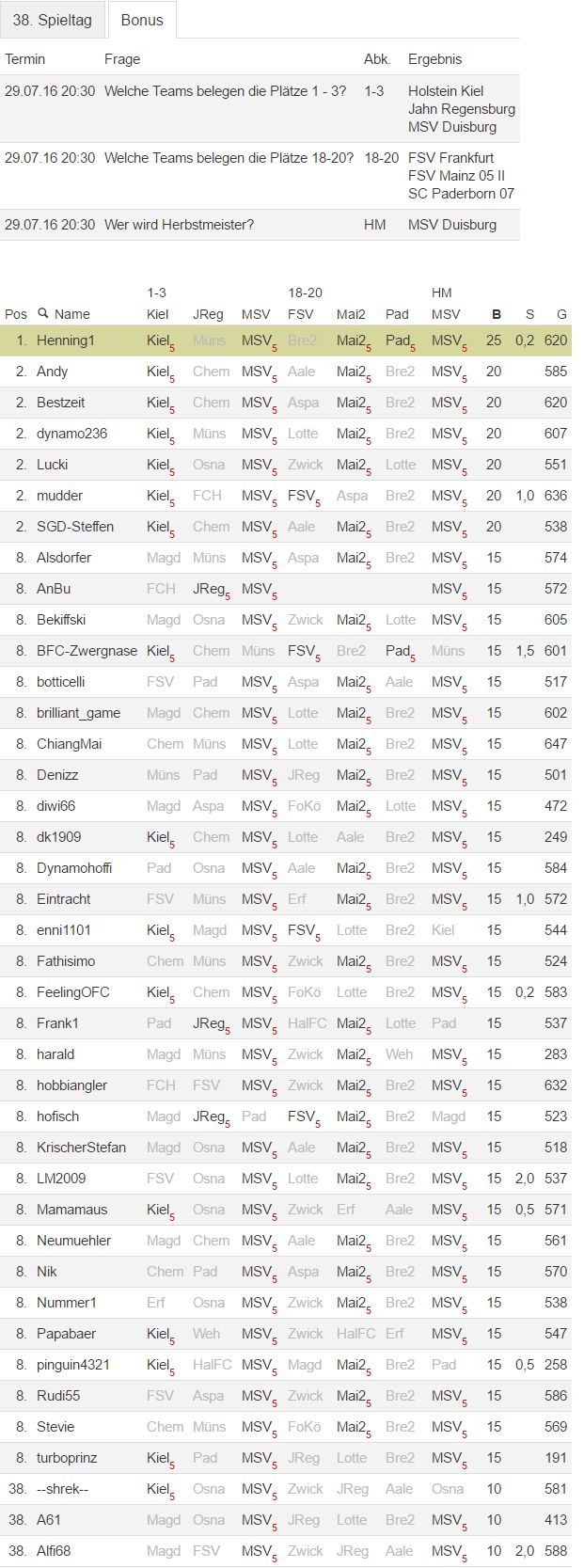 3. Liga-Tippspiel-Statistiken: Saison 2016/17