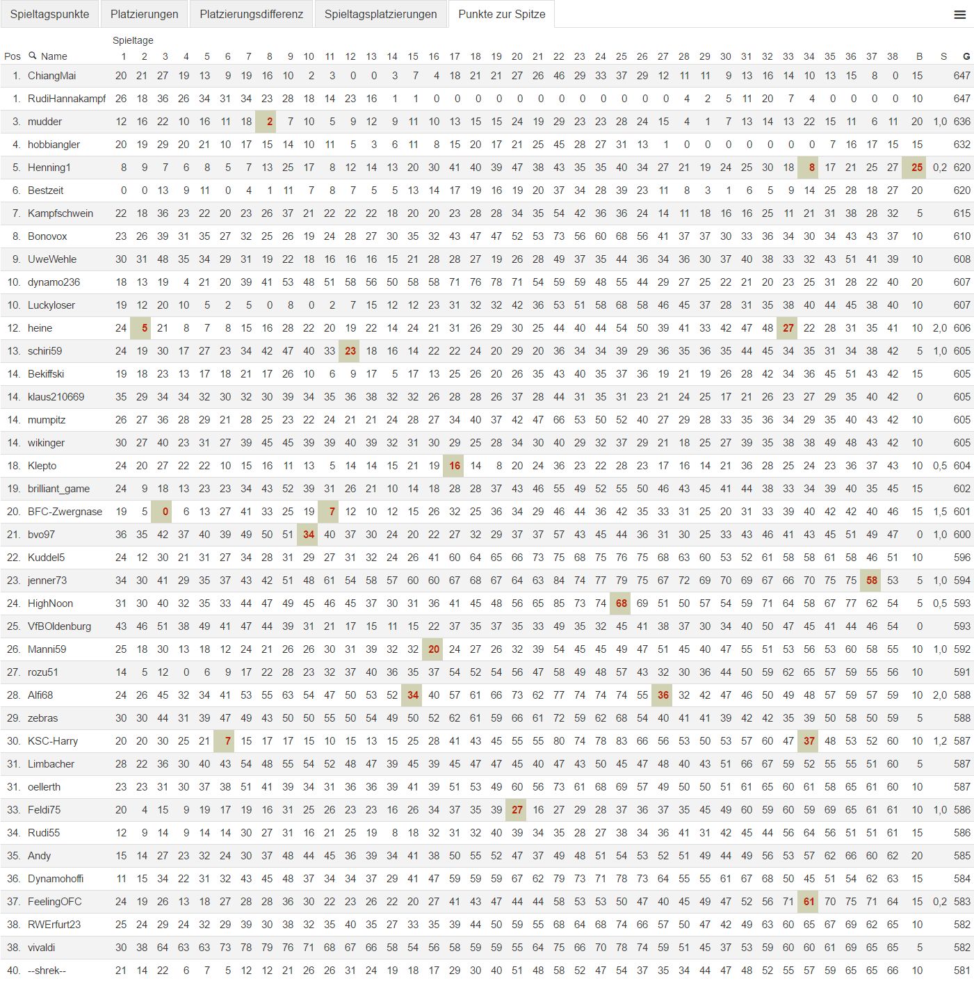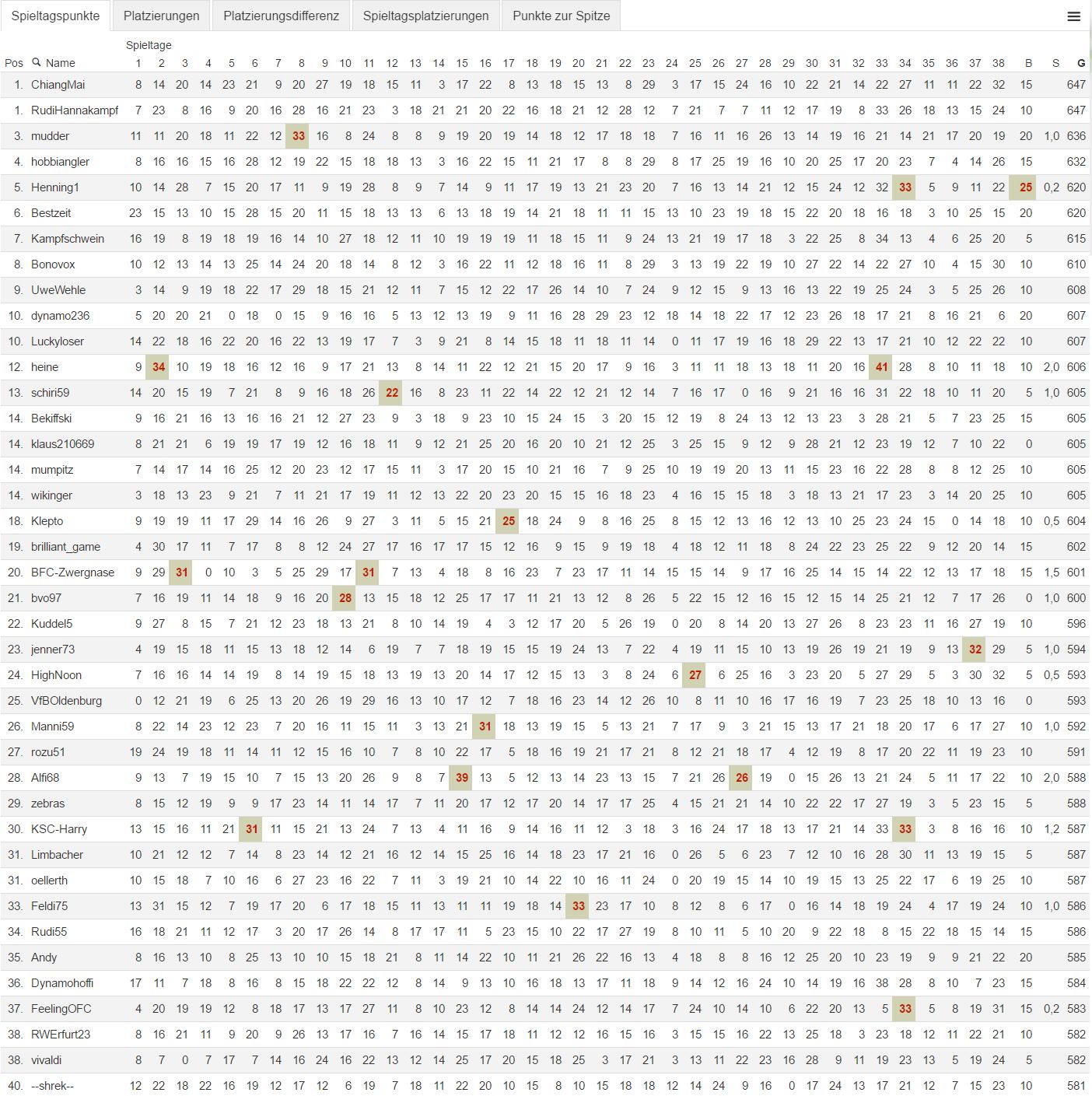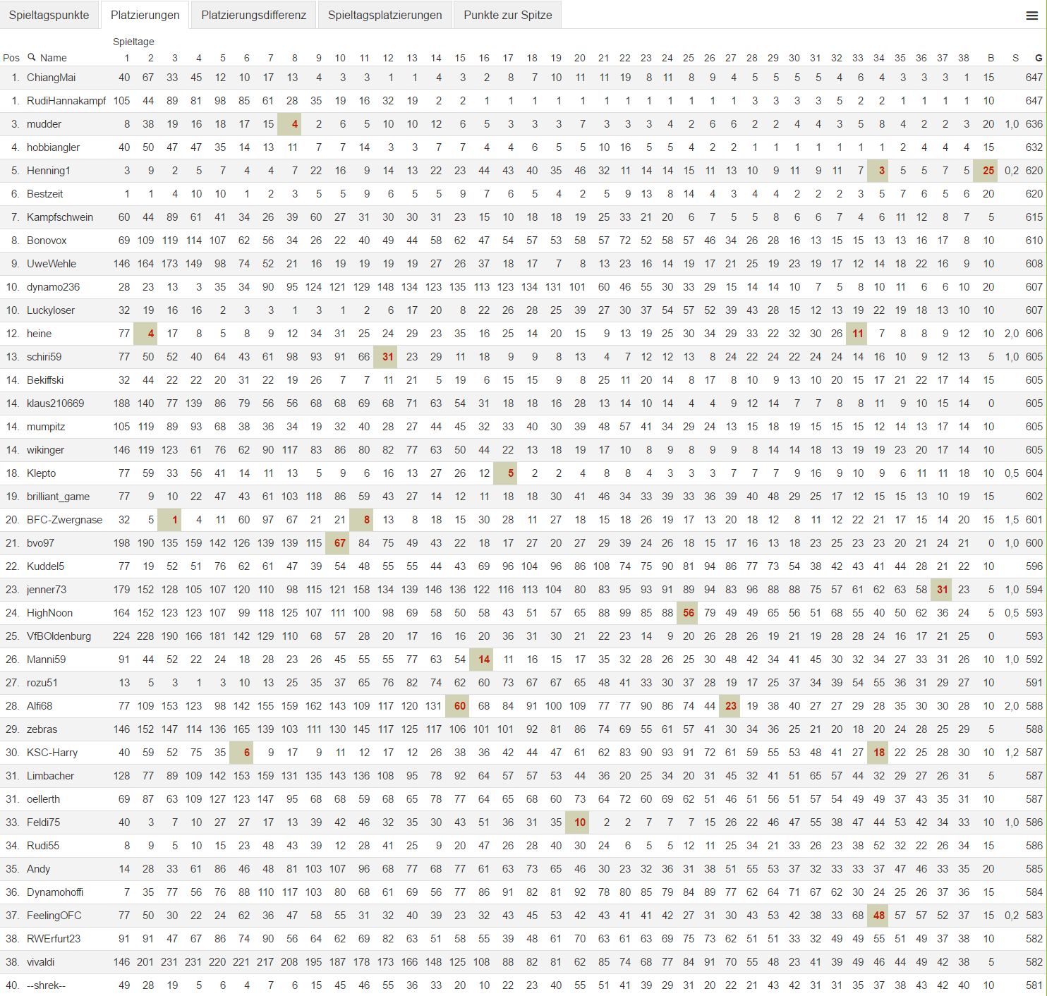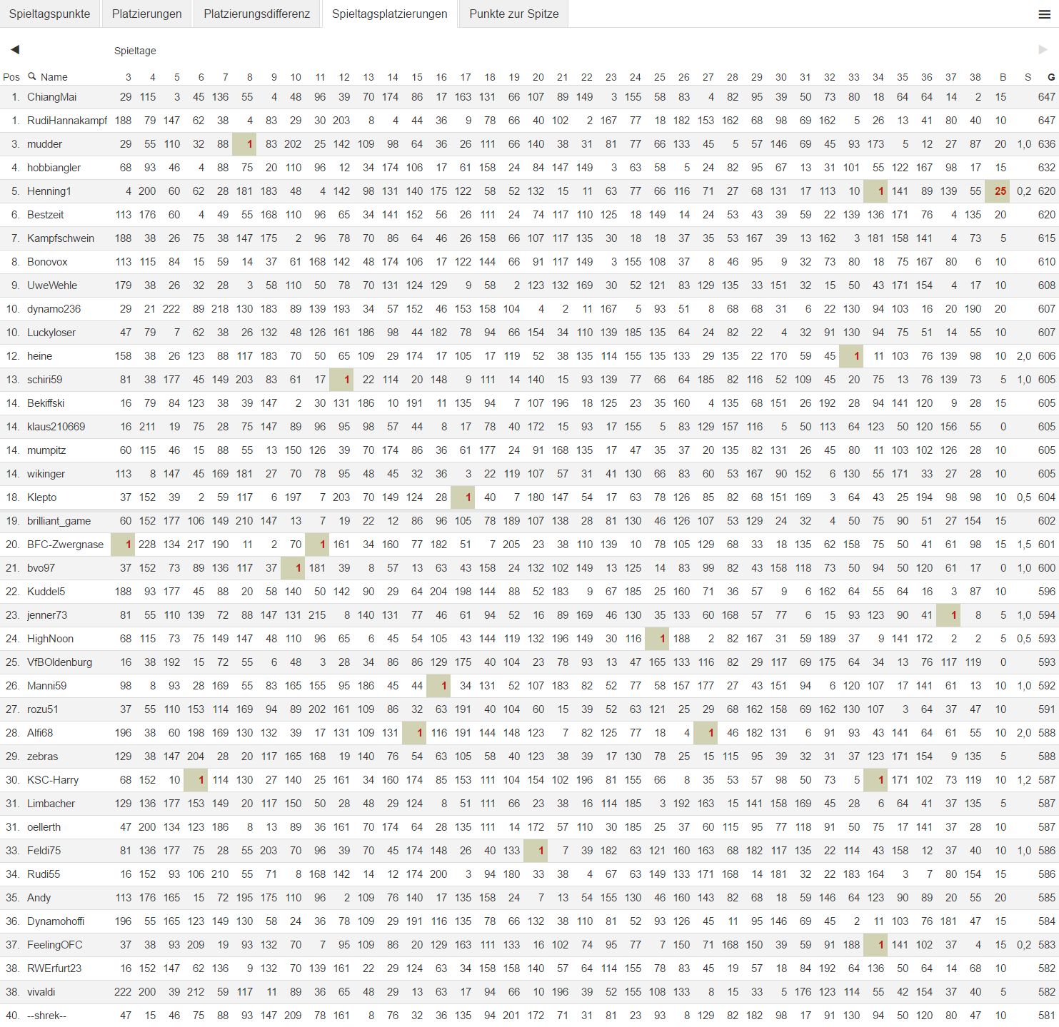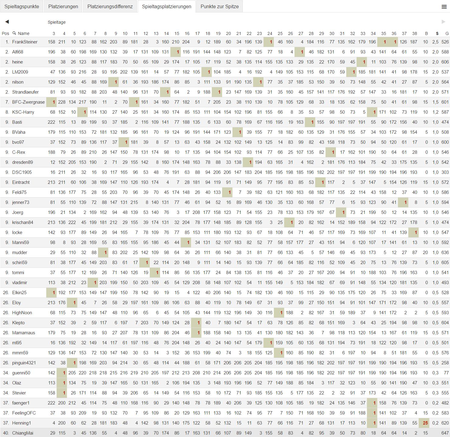 Spieltagplatzierungen (Platzierung nach Siegpunkten)