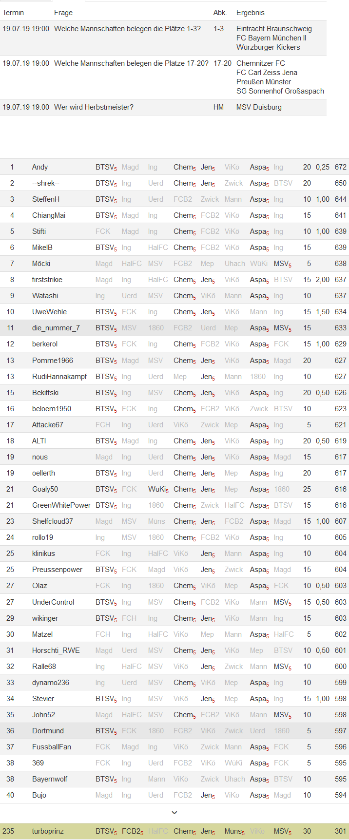 3. Liga-Tippspiel-Statistiken: Saison 2019/20
