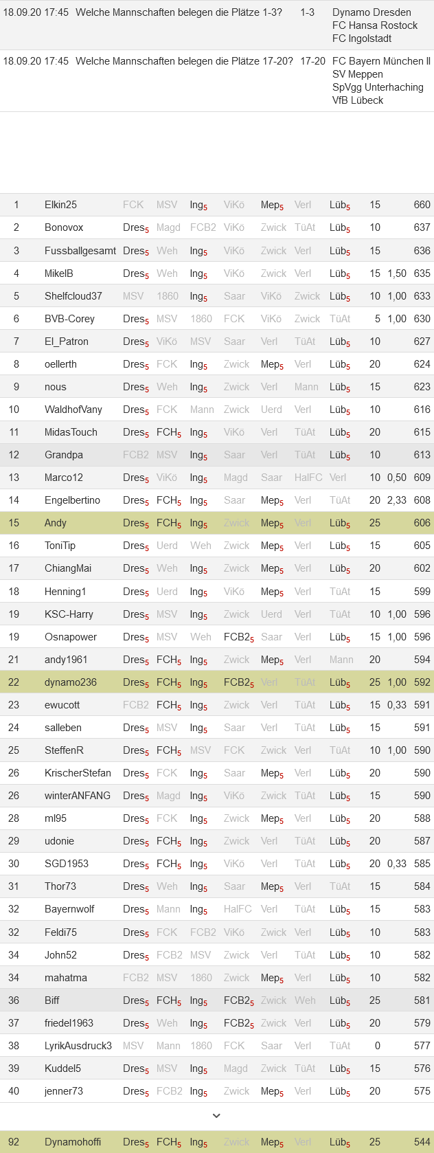 3. Liga-Tippspiel-Statistiken: Saison 2020/21
