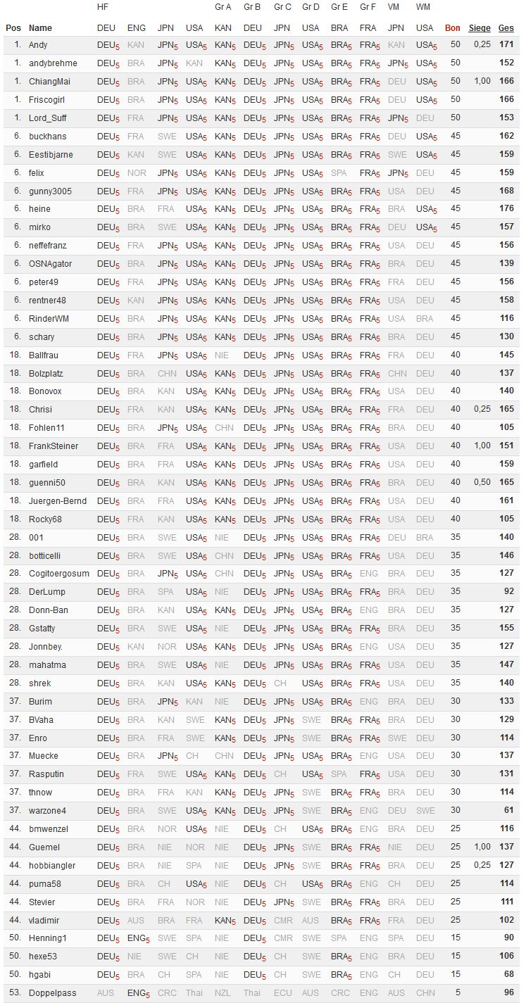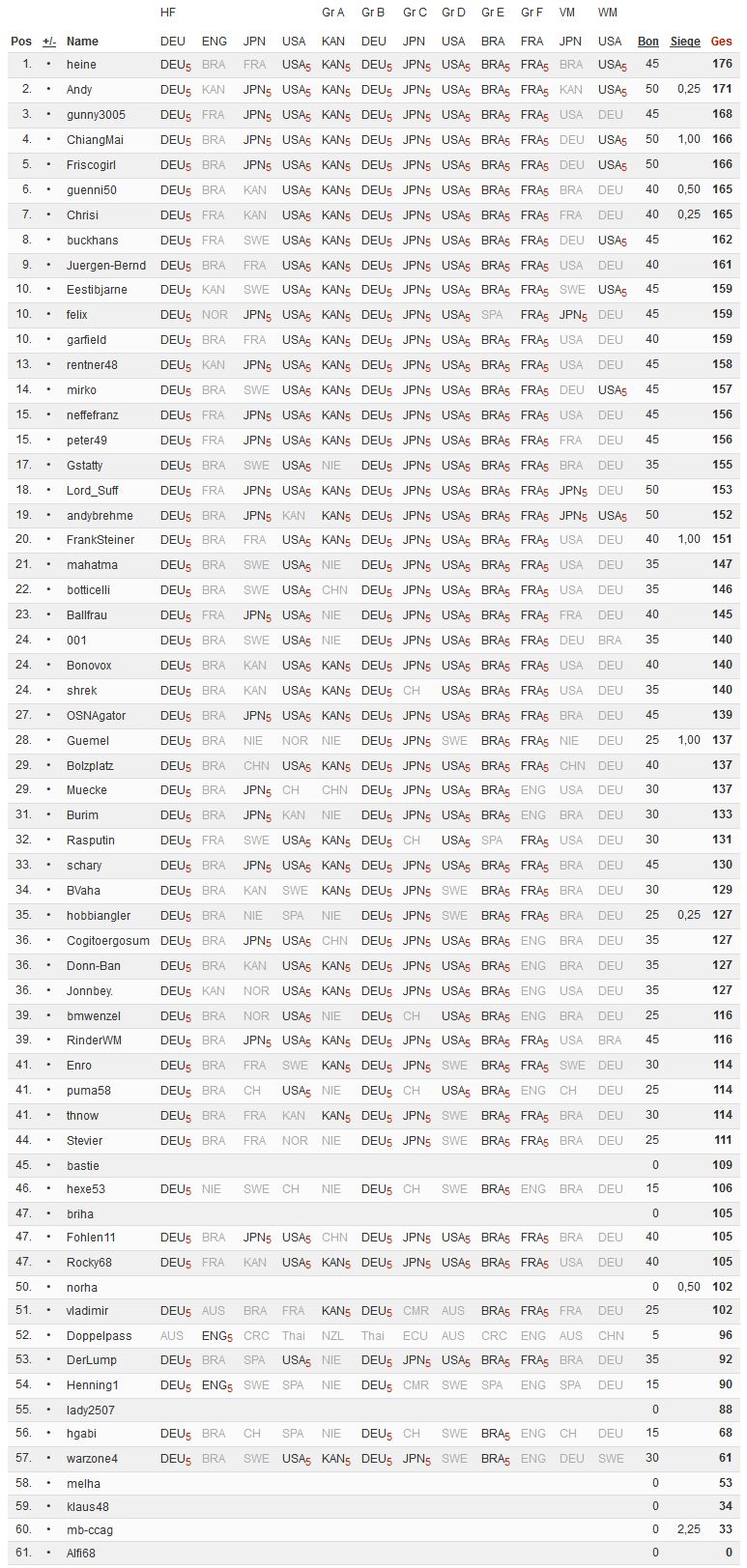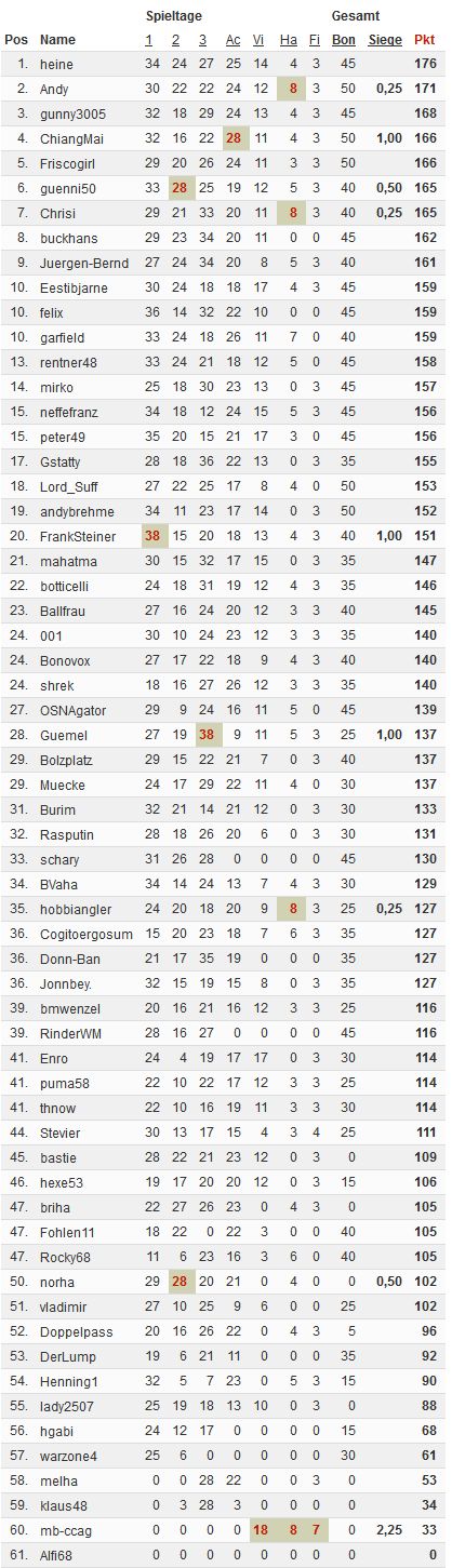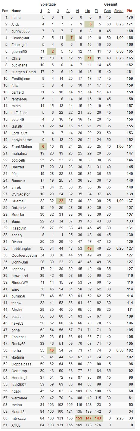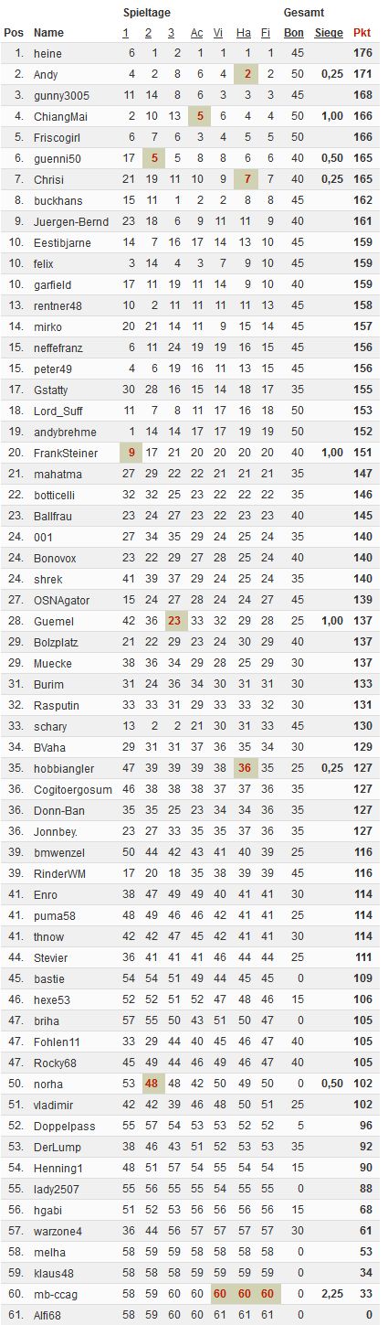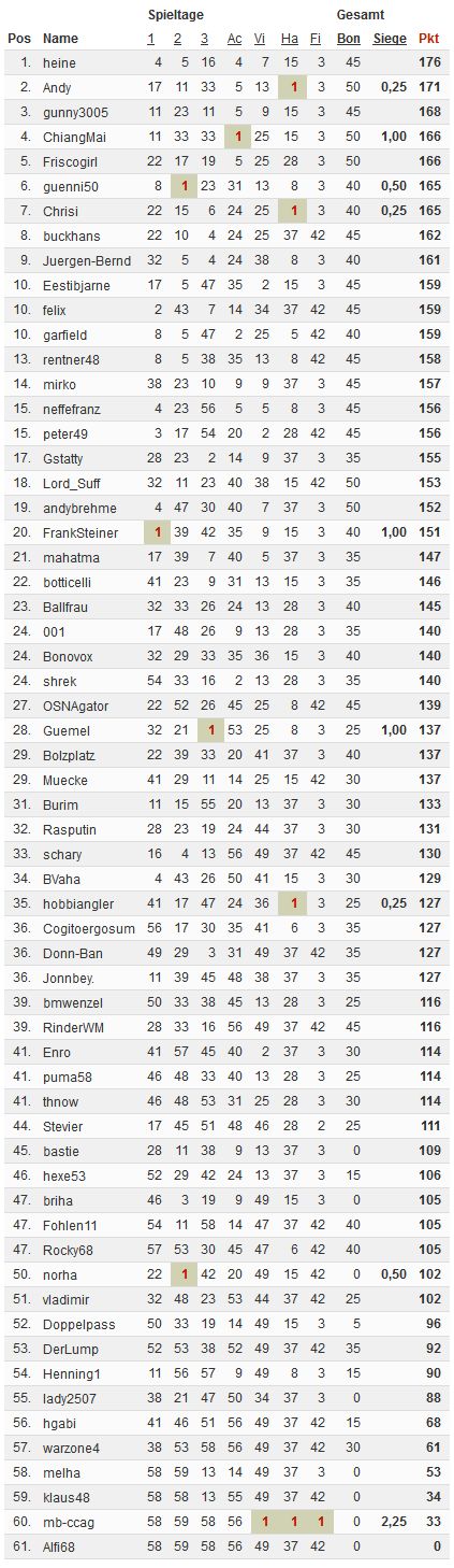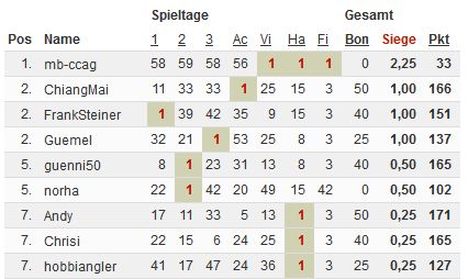 Spieltagplatzierungen (Platzierung nach Siegpunkten)